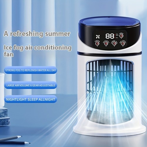 Stay cool and comfortable anywhere! ❄️ What is it - This 3-in-1 Portable Air Conditioner combines a cooling fan, humidifier, and atmospheric light, making it your perfect on-the-go companion. With 6 adjustable speeds and a 300mL water tank, it's designed to create a personalized, relaxing environment. 🌟 Why you need it: - Combines three essential features: cooling, humidifying, and atmospheric lighting. - Compact and lightweight, perfect for home, office, or travel. - Energy-efficient to help you stay cool without breaking the bank. - Adjustable airflow at a 30-degree angle directs the breeze exactly where you need it. ❤️ Why you’ll love it: - Quiet operation ensures a peaceful environment. - Easy to power with USB from power banks, laptops, or car chargers. - Colorful lights enhance ambiance, making it perfect for relaxation or parties. - Simple setup with included USB cable and user manual. 🔧 How to use it: Simply fill the water tank, plug it in via USB, select your preferred speed, and enjoy a refreshing breeze. Adjust the airflow direction for targeted cooling. 💯 Guarantee: Enjoy a refreshing experience with our 30-day return policy. Don't miss this must-have for the summer—order now and transform your space!