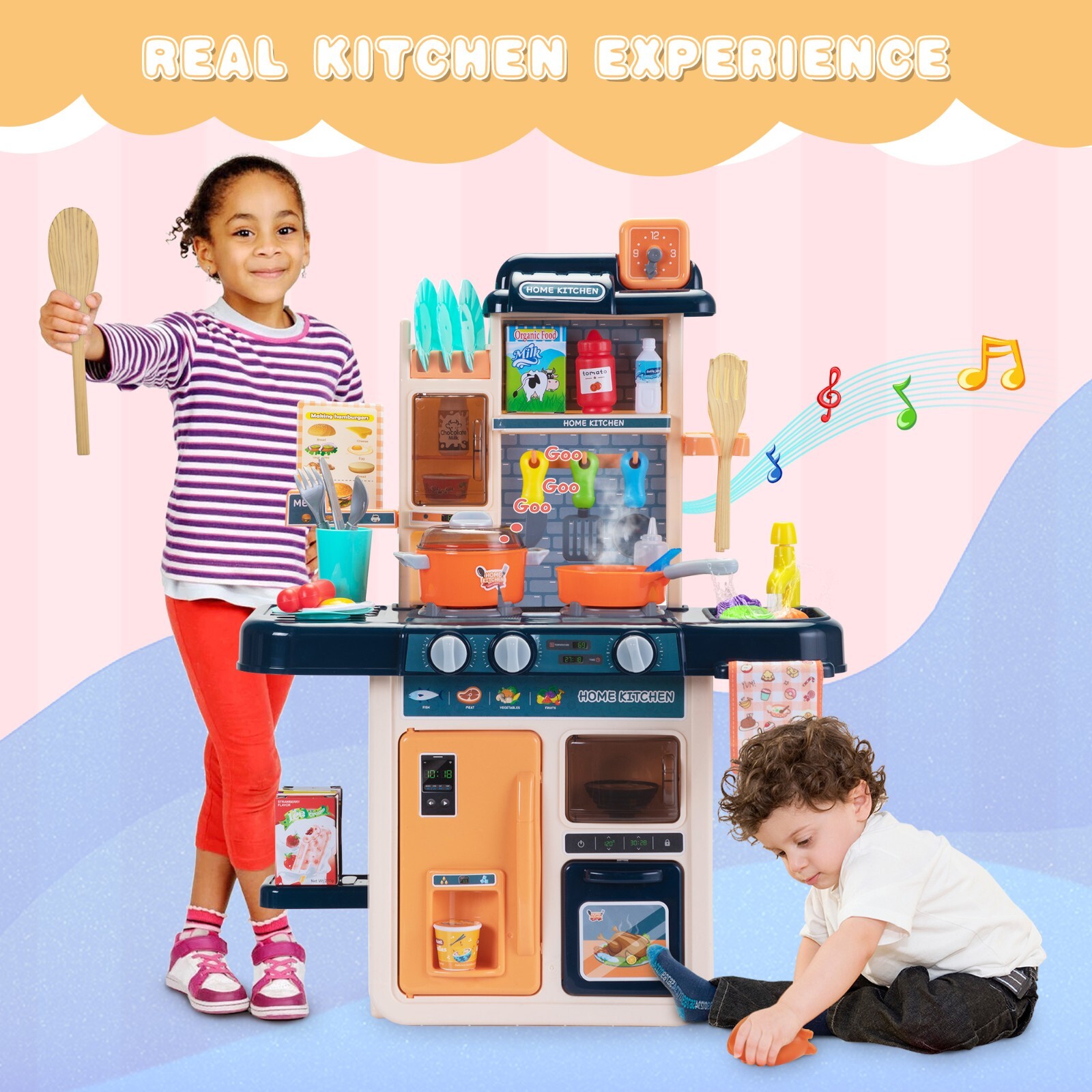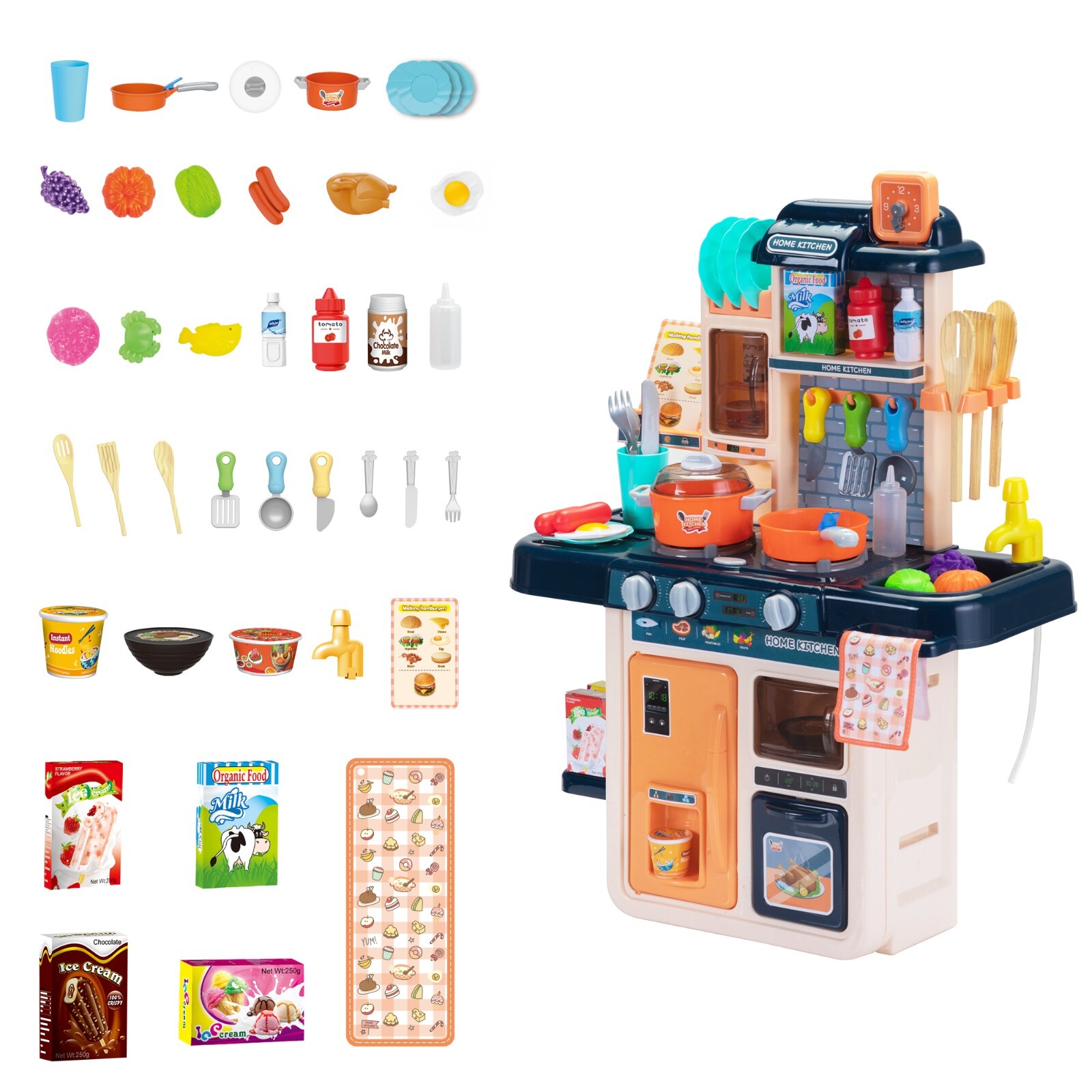 👩🍳 A Culinary Wonderland for Little Chefs! This 42-piece Kids Kitchen Playset is the perfect educational toy to keep your children entertained for hours! Featuring a realistic stovetop with lights, music, and steam effects, plus a play sink with running water, it mimics a real kitchen experience, making cooking exciting and fun. ✨ Why You Need It: - Sparks creativity and imaginative play in your child. - Engages kids in role-playing, developing social skills. - Built with durable, safe materials – PP and ABS certified. - Encourages tidiness with a working sink for cleaning dishes. - Hands-on learning about food preparation and kitchen responsibilities. 🎉 Why You’ll Love It: - Comes complete with 42 accessories, including play food and cookware. - The unique color-changing food enhances the cooking experience. - Safe and engaging design encourages interactive play with friends and family. - Realistic features create an immersive cooking environment for kids. - Perfect gift for aspiring young chefs and perfect for birthday parties or playdates! 🌟 How to Use: Set up the kitchen in your playroom or backyard. Grab the apron, turn on the lights, and let your kids wash their food in the play sink. Allow them to explore the kitchen as they whip up fun meals together! 💯 Our Guarantee: We are committed to your satisfaction! If for any reason you’re not delighted with the kitchen playset, we’re happy to assist you with our easy return policy. Make your child’s playtime memorable – order now for a culinary adventure that inspires creativity!