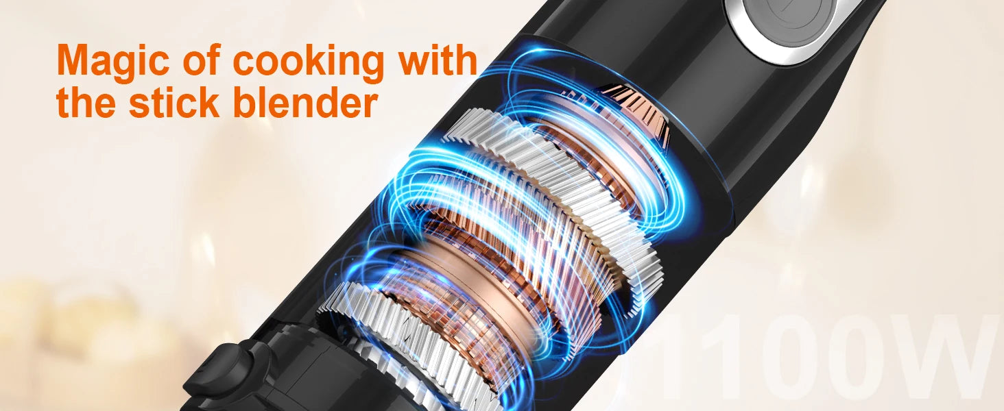 Immersion Blender 5-in-1 Handheld Blender - 1100-watt scratch-resistant blending stick for shakes, purees and smoothies